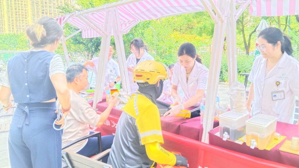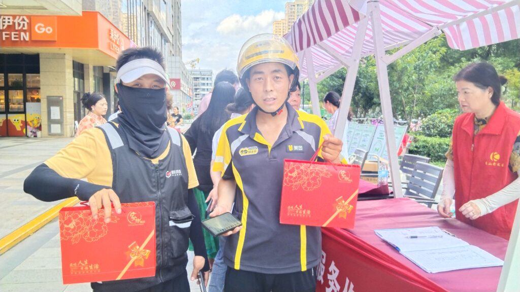 组织公益义卖活动,号召居民参与久久公益,传递爱心正能量;关爱新职业群体,为外卖骑手开展健康检查,并送去秋日的问候,表达对新就业形态劳动者的尊重,促进其与社会深度融合。