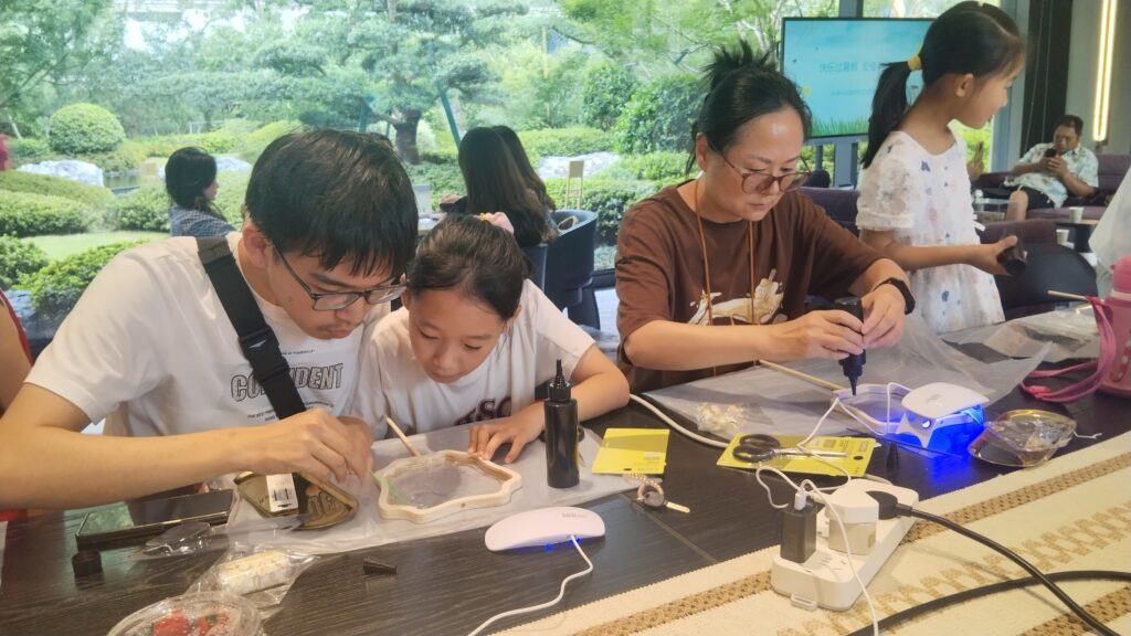 特邀专业非遗传承人向居民深入介绍了水扇的历史渊源、制作工艺和文化内涵。孩子们在老师的悉心指导下,认真绘制扇面图案、精心调配颜料、细致绘制水纹,每一笔都倾注了对传统文化的热爱与敬意。亲手制作的水扇成为了一件件精美的艺术品,更是青少年传承非遗文化的生动实践。